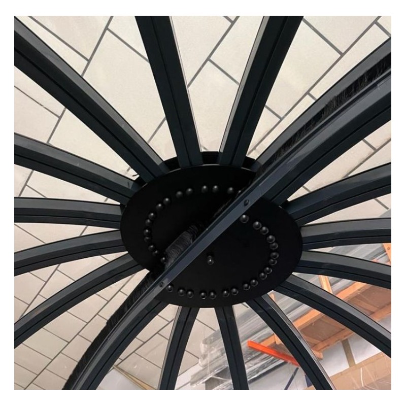 Dieser runde Unterstand Sfero Mit einer Teleskopstruktur bietet sich eine innovative Lösung, um Ihren Wohnraum im Freien das ganze Jahr über zu erweitern und zu genießen.