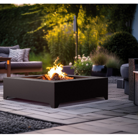 Schwarzes quadratisches Infire 1000 Stahl-Feuerbecken.