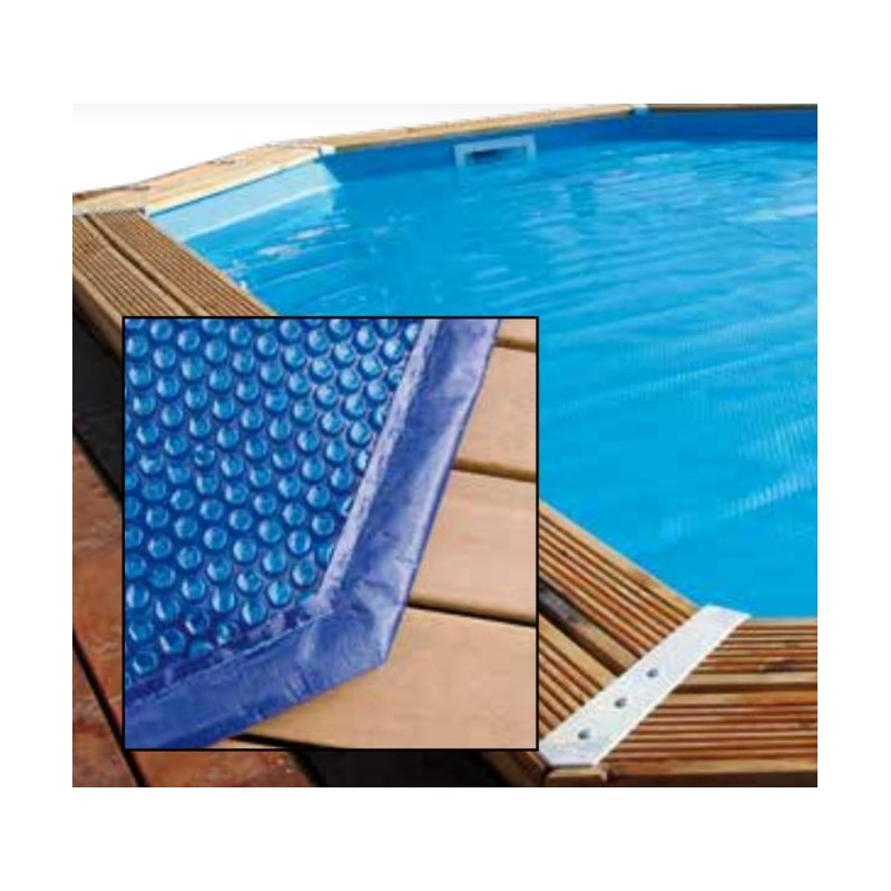 Die rechteckig ausgekleidete Ubbink-Luftpolsterabdeckung für Holzpools hält die tagsüber gespeicherte Wärme für den rechteckigen Holzpool Ubbink Linea / Sunwater 350 x 650 cm.