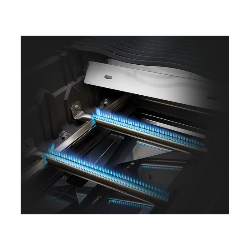 Die gusseisernen Grillroste verteilen die Hitze gleichmäßig und hinterlassen scharfe Brandspuren, und die Brennerabdeckungen aus Edelstahl reduzieren unerwünschte Flammen.