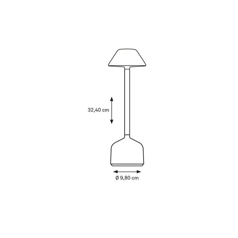 LED-Lampe für den Innen- und Außenbereich in einer wiederaufladbaren hohen Version der von Imagilights veröffentlichten Demoiselle-Kollektion, bestehend aus einer Struktur aus gebürstetem ionisiertem Aluminium und einem konischen Lampenschirm, der mit einem Diffusor verziert ist.