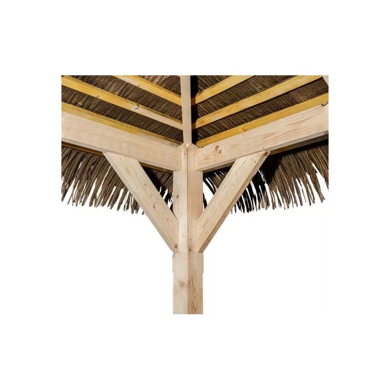 Eigenschaften des Abri Playa Pool House 4 Beine aus Brettschichtholzmit Ankerplatten auf dem Boden, die sowohl Solidität als auch natürliche Ästhetik vereinen.