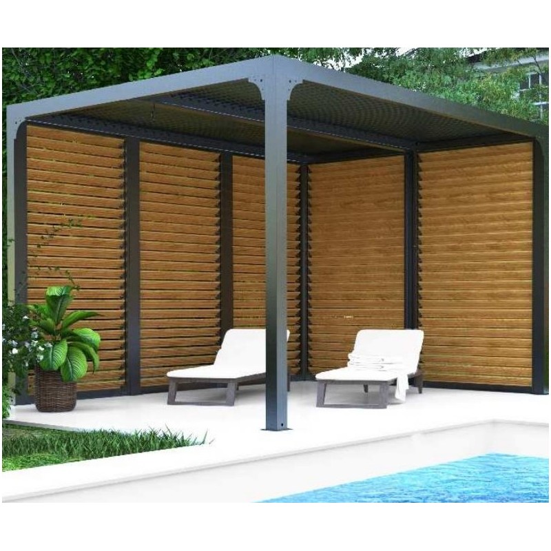 Bioklimatische Pergola Habrita Aluminium 2 Seiten Ventelles Holzimitat 10,80 m2.
