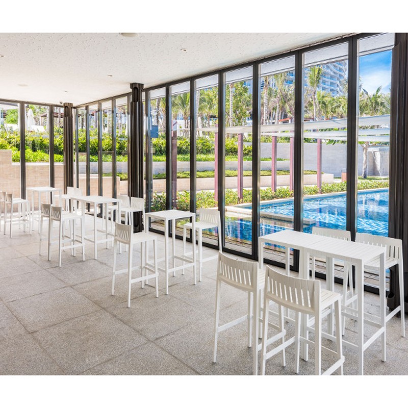 Nämlich: Sitzhöhe der Hockern: 66cm. Auch in der Sitzhöhe 76cm erhältlich. Tischhöhe: 1m. Stapelbare Hocker. Sitzkissen optional erhältlich, kontaktieren Sie uns.