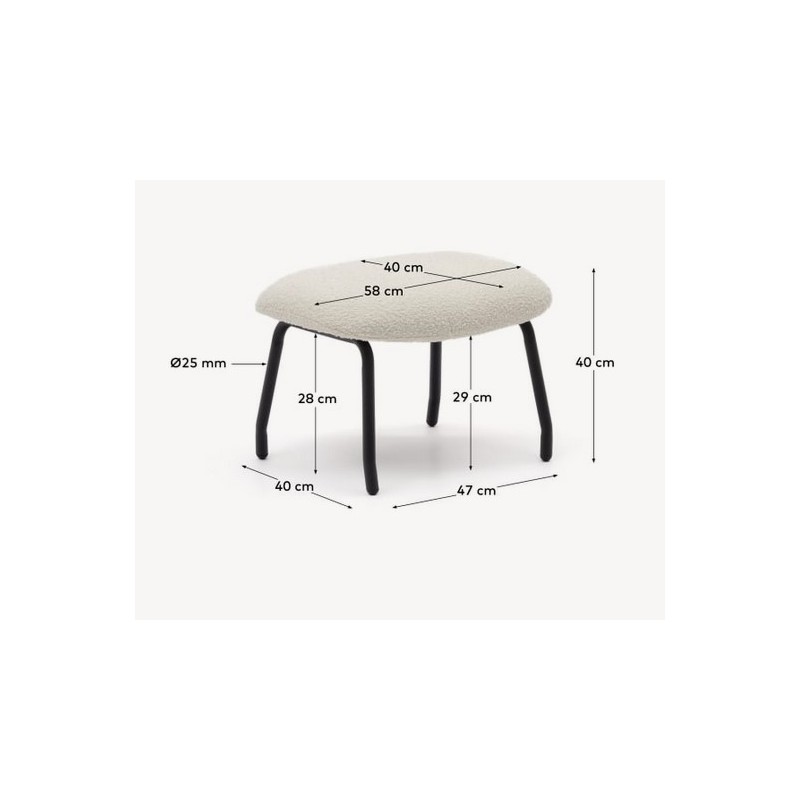 Die Fußstütze für den Sessel Lina aus weißem Frottee und Stahlbein schwarz.