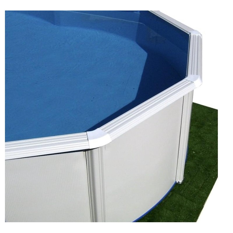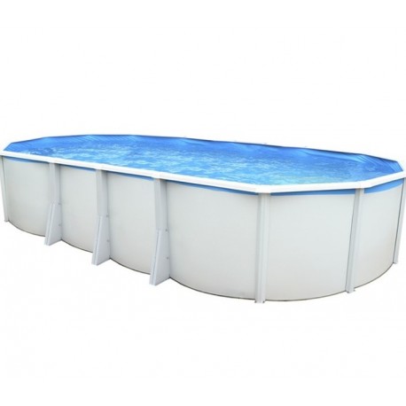 Ovaler Pool 132 cm hoch ohne Strebepfeiler. Der Pool fügt sich perfekt in Ihren Garten ein. Stahlkonstruktion mit Metallprofilen und komplettem Skimmer.