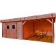 Der überdachte Teil kann zur Aufbewahrung Ihrer Holzreserven oder als freundlicher Ort für einen Snack oder sogar als Garage verwendet werden. Das Dach ist mit Stahlbehältern bedeckt, sehr stark, die den Unterstand und die darin enthaltenen Elemente erhalten. Diese Tanks basieren auf einer Struktur, die aus massiven Sparren besteht, die die Voliges tragen. Die Dachabdeckung ist für 10 Jahre garantiert. Die Montage erfolgt in aller Einfachheit, mit den robusten Dielen von 28mm Dicke, die durch Rillen und Laschen zusammengesetzt werden.
