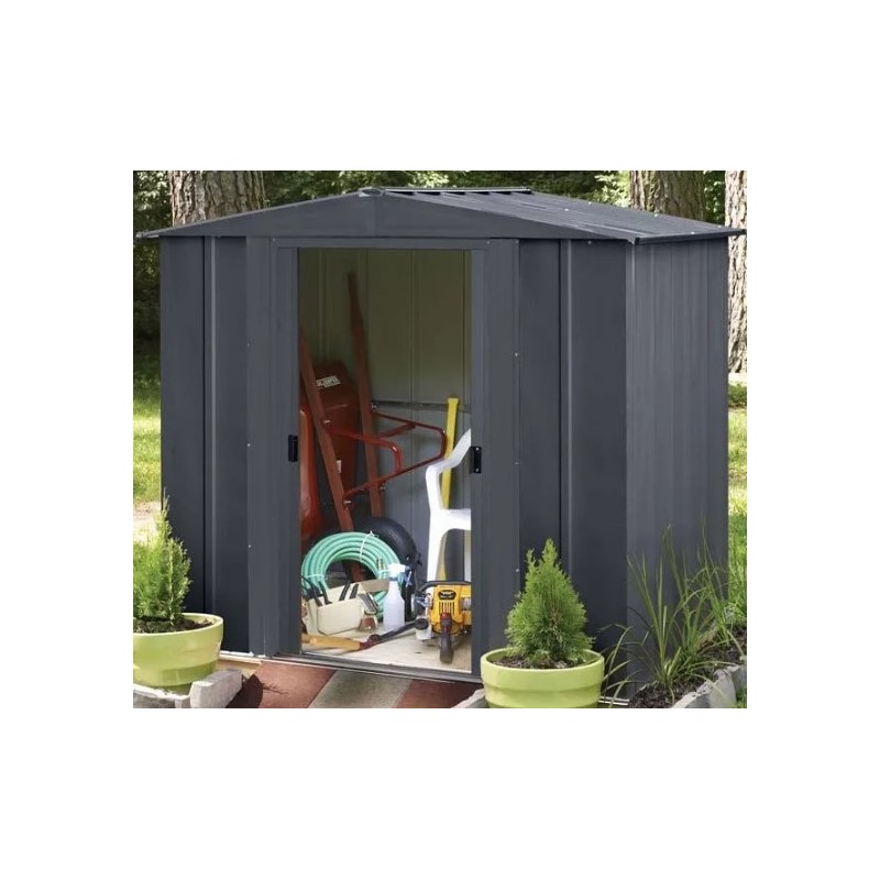 Das Metall-Gartenhaus Habrita 2,92m2 zur Aufbewahrung Ihrer Werkzeuge. Dank seiner Doppeltür bietet er eine bequeme Zugänglichkeit, um auch bei sperrigen Gegenständen leicht ein- und auszusteigen.
