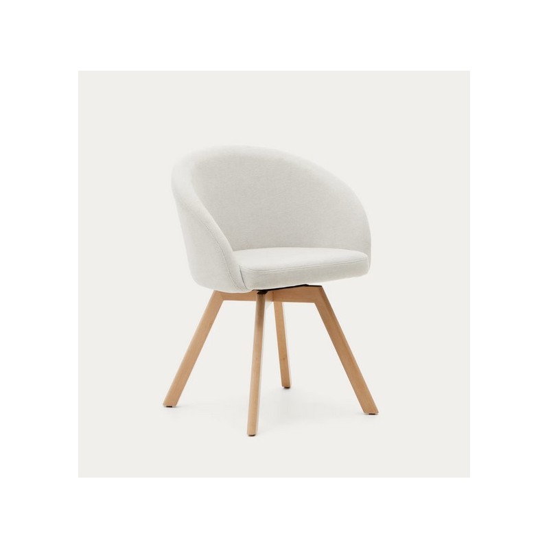 Arvin revolving chair upholstered in beige chenille-effect fabric and Oak wood legs with 100% FSC natural finish.