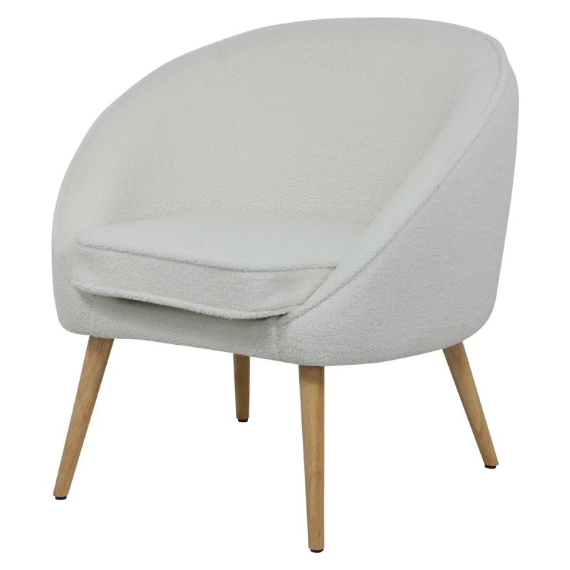 We opt for this Fira Lounge Armchair wool effect unbleached loop VeryForma, its soft seat and massive rubber base offers comfort to your interior.