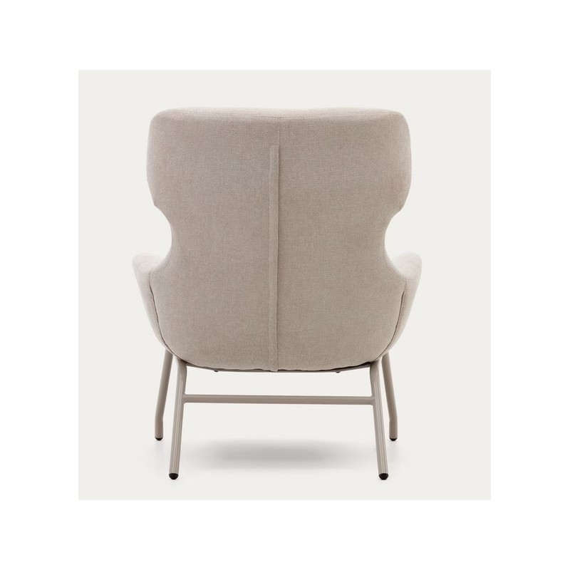 The Lina Armchair is the perfect combination of comfort and design, thanks to its beige chenille upholstery and steel legs with black finish.