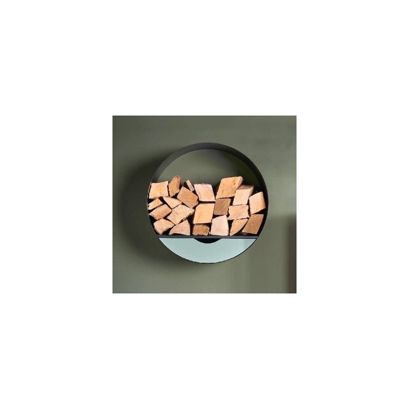 Corinth Black and Sage Green Wall-Mounted Log Rack Dixneuf Design