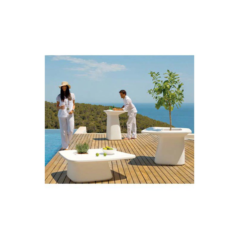 Javier Mariscal for Vondom imagined a series of smart, practical and aesthetic outdoor tables. In the plateau of Moma is based a small tray in depth which will tour round planter, of ice bucket to keep his bottles at the expense or pockets. The plateau of Moma with soft and rounded lines is based on a wide foot, all in 100% recyclable polyethylene resin. The tables come in 3 sizes for 3 different uses: Low for lounging near the ground at the edge of the pool (for use with the pouf Moma for example), Medium for a small snack sitting in a Chair or High and its air of futuristic, standing or seated (with the stool Taburete) console, it is you who see. Furniture outdoor essential design, pure forms and accents solar and summer, Moma is available in several colour francs and tart.