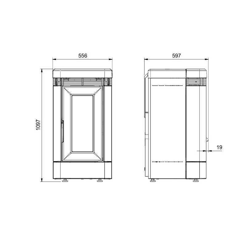 Narrow ventilated pellet stove...