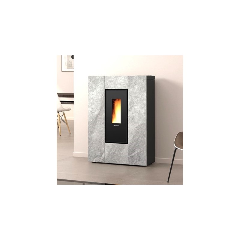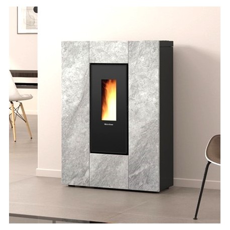 La Nordica Extraflame pellet stove Marilena Plus AD 8kW narrow ventilated natural stone.