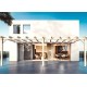 The Sevilla Pergola in laminated wood leaning against the façade of your house to enjoy an extension to the garden and the terrace allows you to modulate the light and the sun with a cover of your choice.