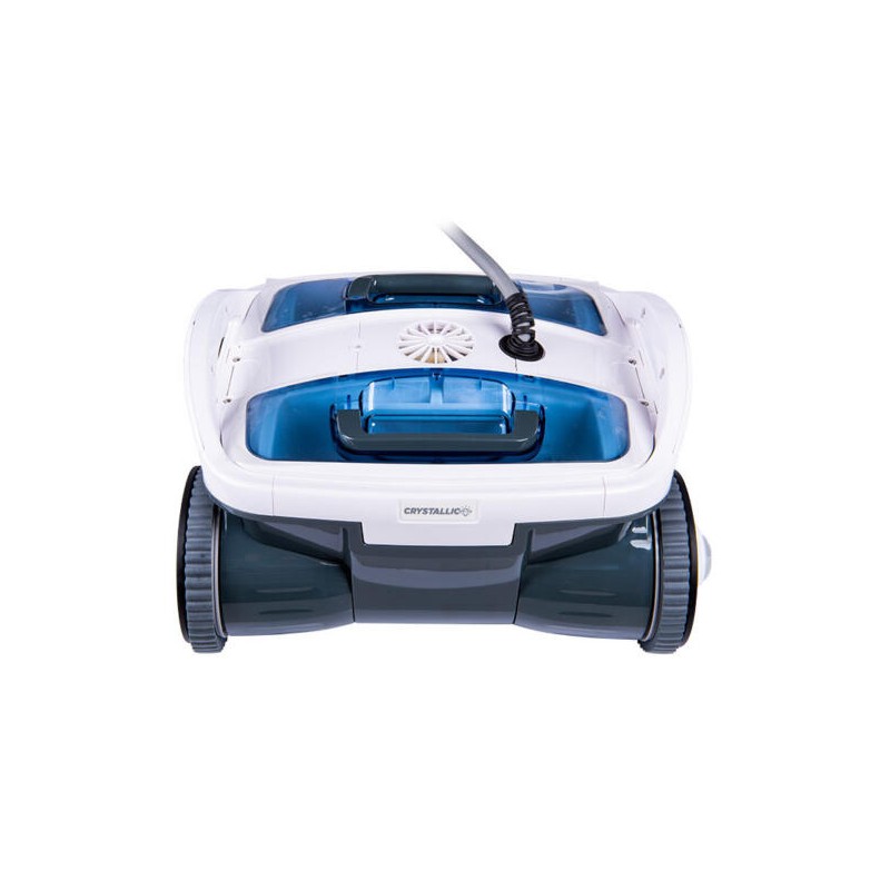 With its four large wheels, the Crytallic robot goes everywhere and moves easily between toys forgotten on the bottom by your children. A simple and very robust mode of movement, perfect for a family pool.4 cleaning wheels-brushes and 1 additional rotating brush The 4 wheels-brushes dislodge dirt to leave the surface perfectly clean. The additional rotating brush ensures impeccable cleaning of the bottom of the pool.