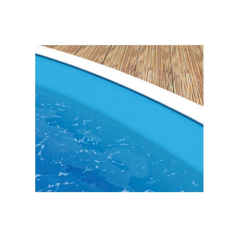 The walls of the Oval Ibiza Azuro 525x320 H150 pool are made of thick steel elements coated with a layer of zinc. In addition, the walls are protected by a layer of anti-corrosive plastic and therefore guarantee the long-term life of the pool. The liner is of superior quality and ensures the tightness of the basin and is resistant to UV rays.