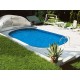 The swimming pool Oval Ibiza Azuro 800x416 H120 With a panel height of 1.20m is buried totally with a self-supporting construction. Implantation on the ground is easy, fast requiring only a day.