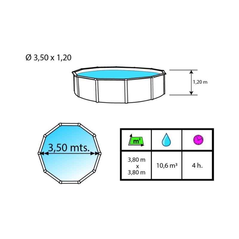 Characteristics of the pool 350xH120 cm.