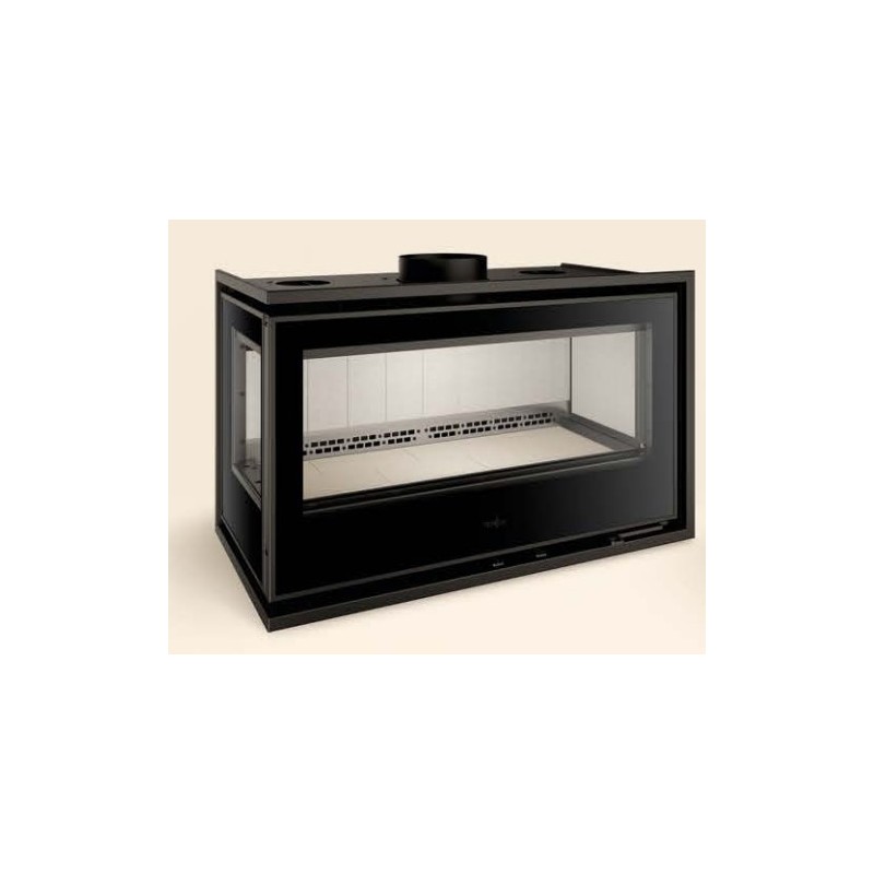 The Panoramic Angle Wood Insert 90 Ferlux achieves the thermal comfort that can be used in the main room by natural convection of the heated air thanks to the combustion of wood.
