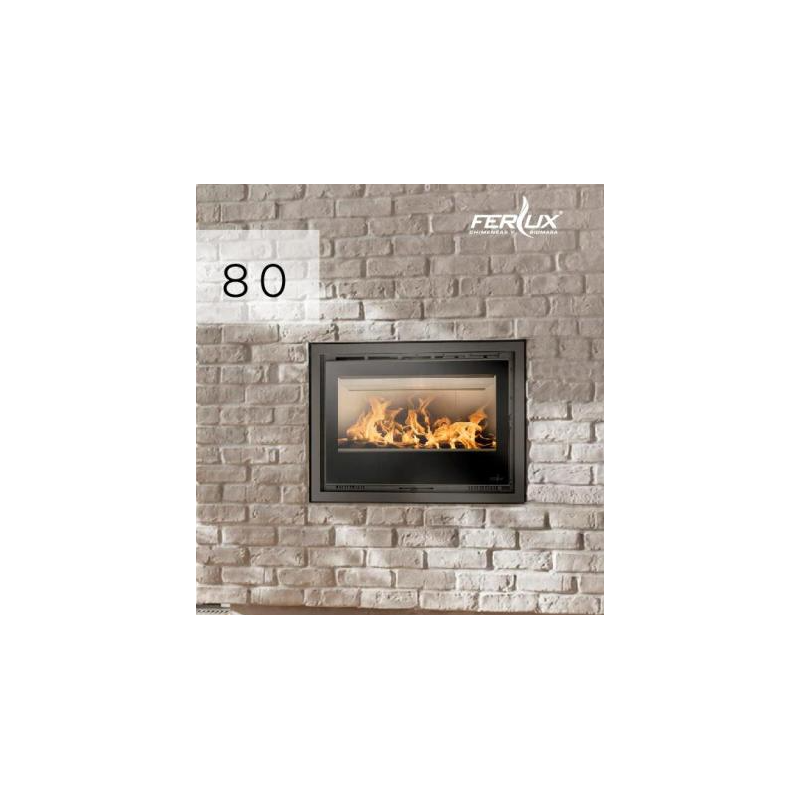 The Teide 80 Ferlux wood-burning fireplace insert with panoramic glass creates a cosy atmosphere. Comfortable ventilation with two turbines up to 270m3.