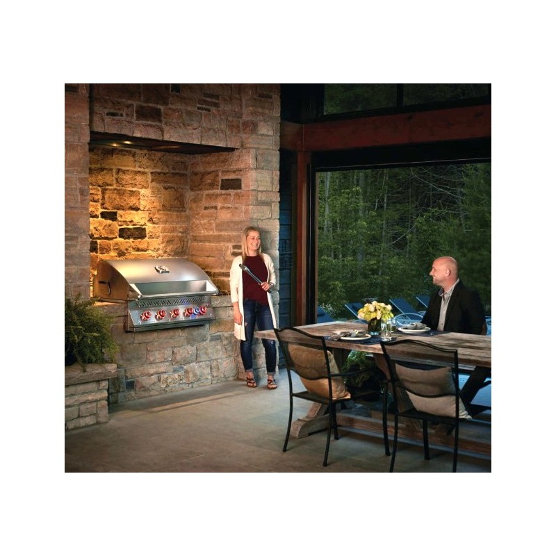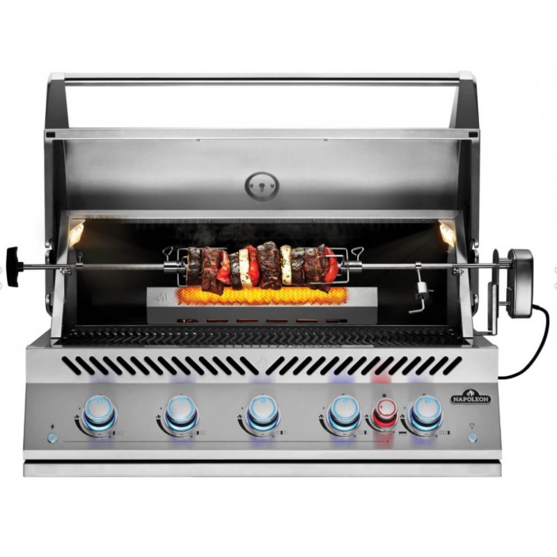 La barbacoa Napoleón de acero inoxidable empotrada El gas empotrado de la serie BIG 38 700 con quemador trasero infrarrojo se integra fácil y armoniosamente en su cocina al aire libre.