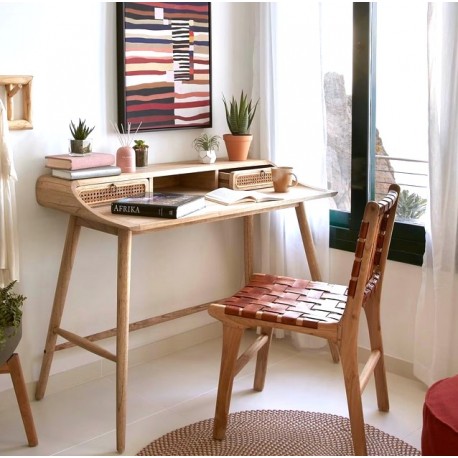 Mesa de escritorio Mindi de madera y ratán 110x60 Ula VeryForma.