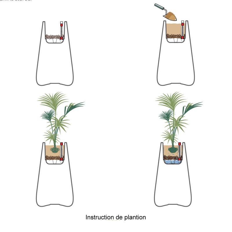 A saber: Modelo propuesto con doble pared Disponible en 10 colores: blanco, negro, bronce, gris claro, antracita, rojo, verde pistacho, naranja, rosa, champán (color champán solo disponible en acabado lacado). También disponible en versión con sistema de riego automático (autonomía hasta 3 meses), lacado brillante, brillante, LED. Precio a consultar Capacidad interior de las macetas: Modelo mediano: 24L - 11gal.