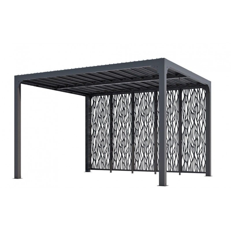 La pérgola consta de una estructura de aluminio y techo. El aluminio es un material duradero, ideal para el paisajismo exterior. No tiene miedo de la corrosión, insectos o moho y no es sensible a los cambios de temperatura. Se mantiene fácilmente con un poco de agua jabonosa y un paño suave.