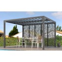 La Pérgola Bioclimática Habrita está equipada con un techo compuesto por cuchillas direccionables que le permiten controlar fácilmente el brillo y el calor en su interior. También está equipado con un disyuntor de diseño de mosaico que filtra la luz y reduce los efectos del viento.