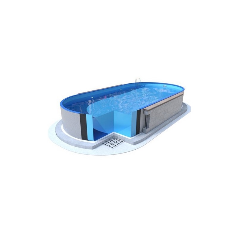 La piscina de Ibiza debe estar enterrado y no puede instalarse sobre el suelo. La instalación de la piscina requiere una losa de hormigón colocada previamente, después de la puesta a tierra de 2 paredes perpendiculares a las paredes ovaladas alargadas de la piscina.