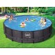 La Piscina Elite redondo tiene un marco de metal y diseño de acabado de ratán. El efecto ratán sintético combinará perfectamente con sus muebles de jardín. El acabado intenso de la piscina Elite Round Design Rattan, sobre el suelo, ahorra espacio y es fácil de instalar. Una profundidad de 107 cm es ideal para jóvenes y mayores. El montaje de piscinas Elite redondas con marco metálico es rápido. El marco de metal es inoxidable y resistirá el clima.