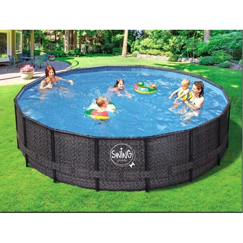 Disfruta de todos los beneficios de una piscina con facilidad gracias a la piscina Swing Elite Round Rattan Design. Con una profundidad de 1,07 m, el diseño de calidad y la robustez de la piscina tubular Swing le permiten una instalación sobre el suelo.
