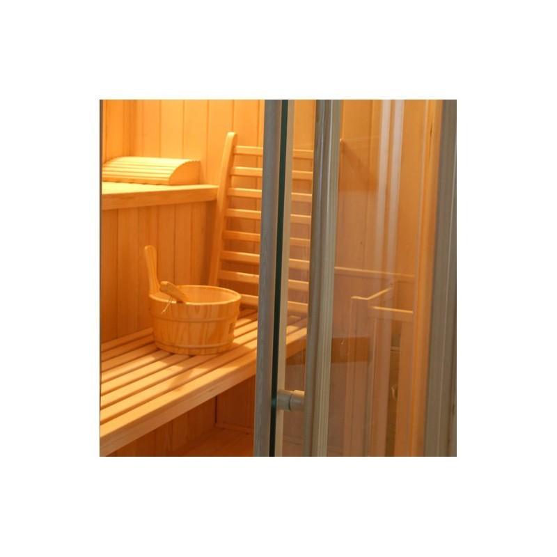 Sauna tradicional angular diseñado para dar cabida a 3 personas.