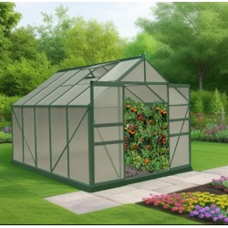 El invernadero del jardín se compone de una estructura de aluminio anticorrosión y paneles de policarbonato anti-UV de 4 mm y se puede instalar muy fácilmente instalando clips que se insertan en la estructura para bloquear los paneles.