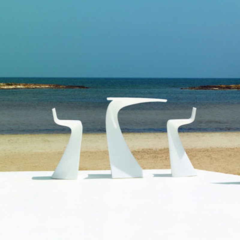 La colección de alas de A-cero para VONDOM nace de los pliegues resultantes de la proyección dinámica de líneas rectas y curvas. Una colección de mesas y taburetes con líneas ultra-gráficas, curvas esbeltas y perfil escultórico.
