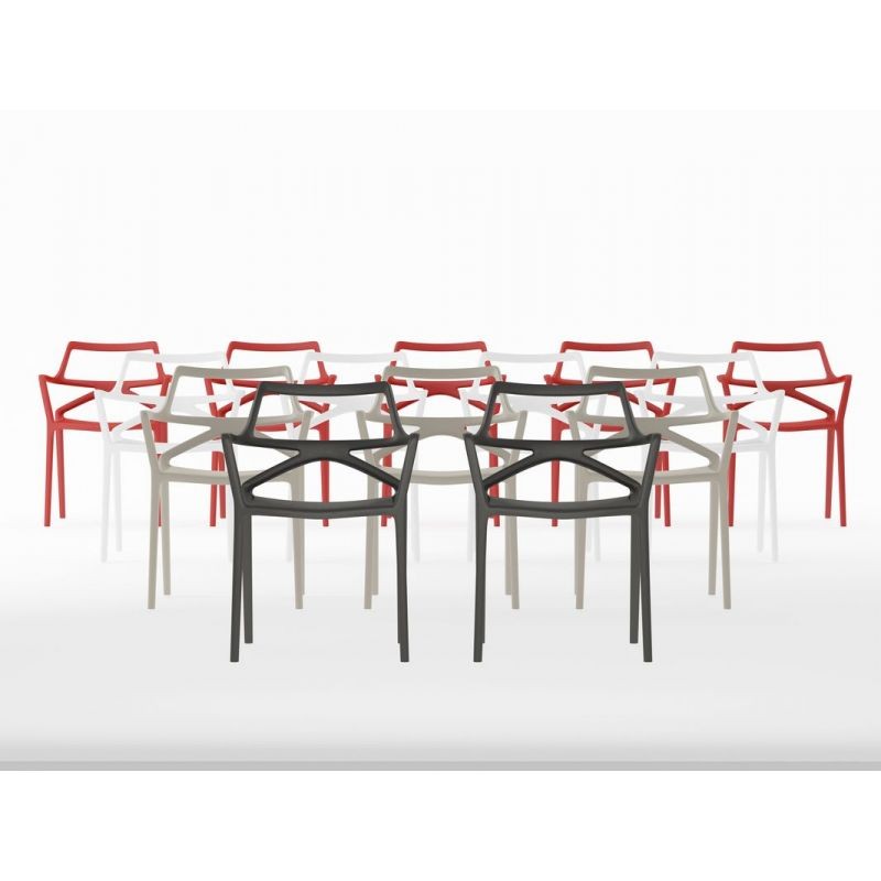Gracias a su composición de polipropileno reforzado con fibra de vidrio, la silla Delta ofrece muchas ventajas funcionales; Es ligero, robusto y resistente a la intemperie.