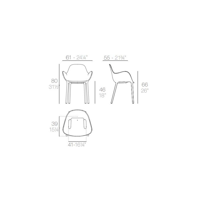 A saber: silla apilable. Altura del asiento: 45 cm. Uso interior y exterior. Cojín de asiento disponible como opción.