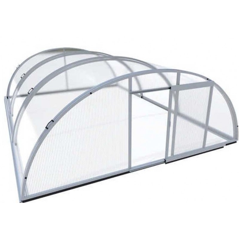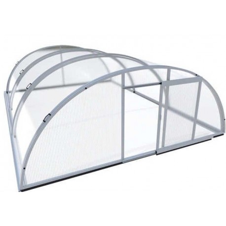 L'Abri Abrilios coulissant se compose d’une armature en aluminium et de parois en polycarbonate de 10 mm d’épaisseur.