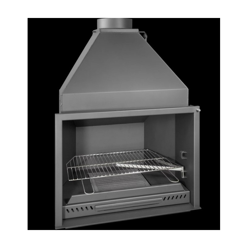 Foyer-Barbecue Ferlux à encastrer de 70cm sans porte, fabriqué en acier au carbon de 4mm, grille en fonte