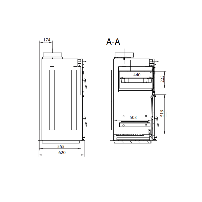 Poêle bois. Poêle à granulés et pellets. Insert à bois panoramique. Disponible aussi en 100 et 90 cm.