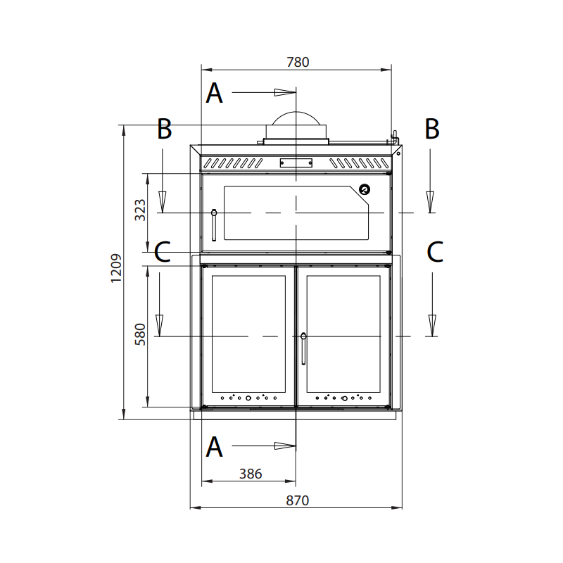 Barbecue Four Ferlux Pratic 80 à encastrer en acier avec portes vitrées.