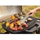 La grille de réchaud incluse, dotée de charnières innovantes, permet de rabattre la grille lorsqu’elle n’est pas utilisée pour donner un accès complet aux grilles principales.