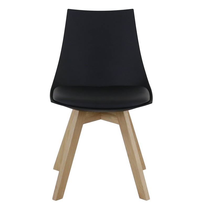 Ces jolies chaises noires et piétement chêne KosyForm surfent sur la tendance scandinave. On aime leur piétement effilé en bois de chêne naturel.