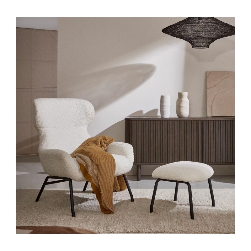 Le Fauteuil Lina est la combinaison parfaite de confort et design, grâce à sa tapisserie en bouclette et ses pieds en acier avec finition noire.