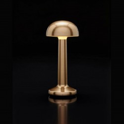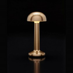 Baladeuse d'extérieur LED rechargeable de la collection Moment éditée par Imagilights, composée d'une structure en aluminium ionisé brossé et d'un abat-jour cylindrique agrémenté d'un diffuseur en polycarbonate opalin.