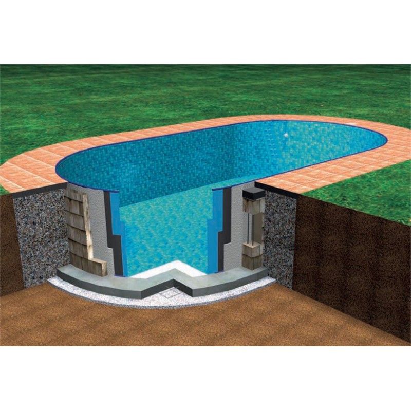 L'installation de cette piscine enterrée nécessite une dalle béton ou et un cadre latéral mural en béton.