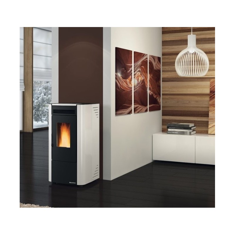 Le Poêle à granulés étroit ventilé Ketty Evo La Nordica Extraflame a une puissance nominale de 7kW qui permet de chauffer jusqu’à 186m3 avec programmable hebdomadaire. Le poêle à bois à une capacité de 15kg de granulés.
