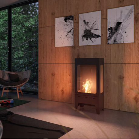 Son fonctionnement écologique ne nécessite aucun raccordement à la cheminée et la chaleur est transférée à 100 % dans la pièce.